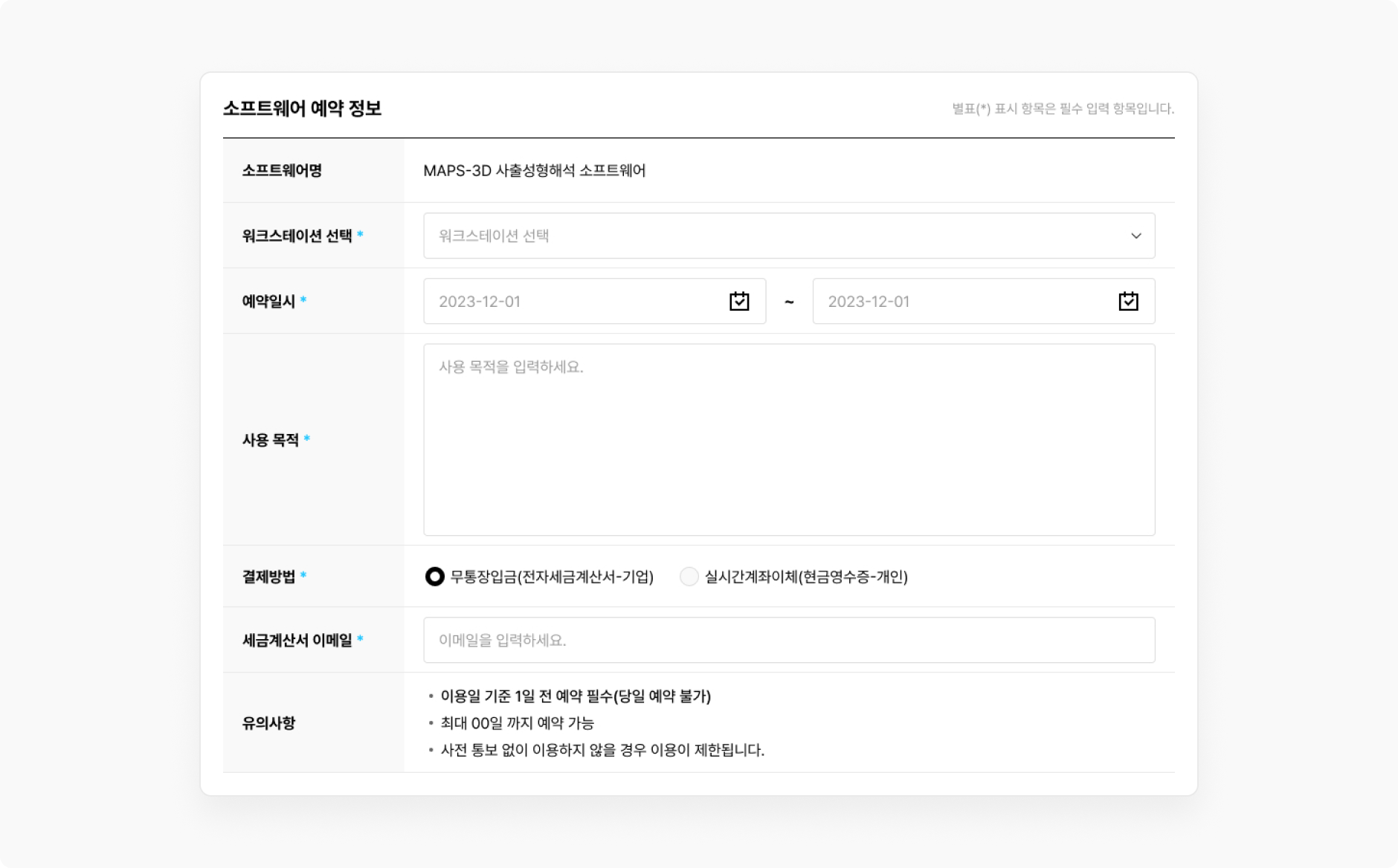 소프트웨어 사용 후 결과물 데이터 미 삭제로 인하여 발생하는 문제 및 손해는 예약자 본인에게 있습니다.